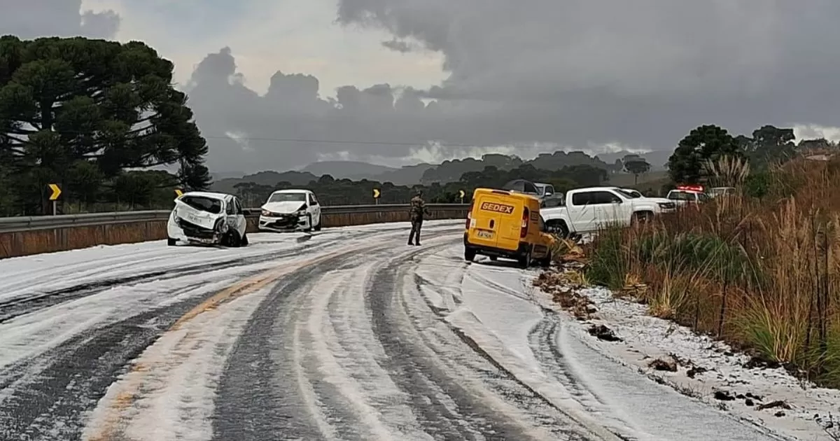 Uma rápida e intensa chuva de granizo atingiu a cidade de São Joaquim, na Serra Catarinense, na tarde desta segunda-feira, 9 de agosto. O fenômeno, que durou cerca de sete minutos, surpreendeu motoristas e moradores, deixando vias cobertas por gelo e causando um acidente com cinco veículos. Apesar do susto, a comunidade se uniu para ajudar os envolvidos e mostrar que, mesmo diante de situações adversas, a solidariedade e a força da natureza prevalecem.