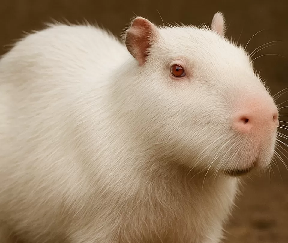 A capivara albina é uma espécie incomum de mamífero, caracterizada pela ausência do pigmento melanina em sua pele, o que resulta em uma coloração branca ou amarelada. Sua ocorrência é bastante rara na natureza, tornando esse avistamento ainda mais especial.