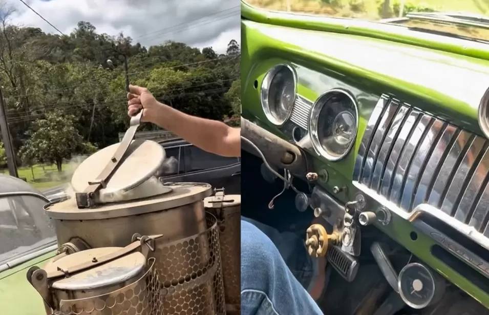 Um vídeo compartilhado pelo empresário catarinense Emílio Dalçoquio, viralizou nas redes sociais ao mostrar um carro nada convencional: um veículo movido a lenha. A cena foi registrada em Benedito Novo, município localizado a cerca de 100 km de Itajaí, no Vale do Itajaí, e chamou a atenção pela criatividade típica do interior de Santa Catarina. Nas imagens, Dalçoquio mostra um carro que roda há 47 anos utilizando lenha como combustível, provando que a inovação e a sustentabilidade andam de mãos dadas.