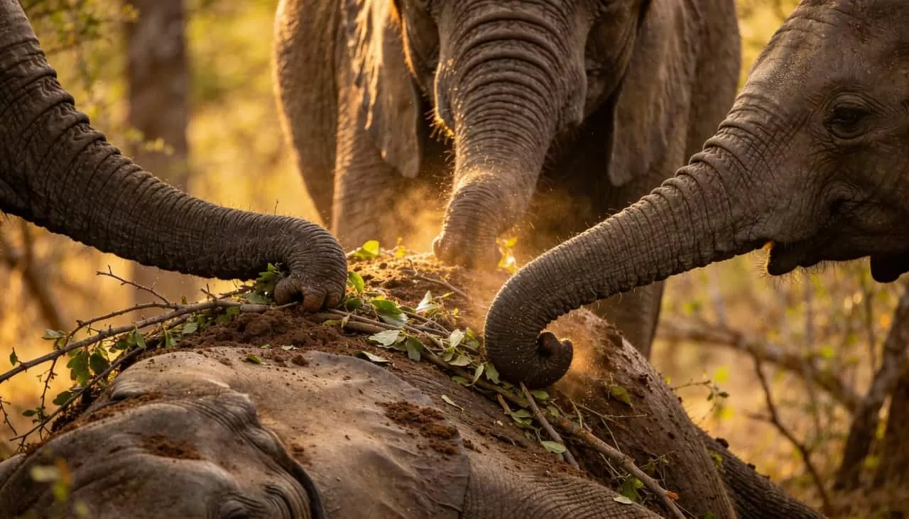 Quando um elefante morre, seja por causas naturais ou pela ação humana, seus companheiros de grupo demonstram um comportamento de luto muito semelhante ao dos seres humanos. Eles cercam o corpo do elefante morto, tocam com suas trombas e emitem sons de lamento. Alguns elefantes até mesmo tentam levantar o corpo do companheiro caído, mesmo que ele seja muito maior e mais pesado que eles.