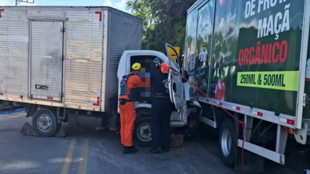 Ao chegarem no local do acidente, os bombeiros se depararam com uma cena preocupante: três pessoas envolvidas na colisão, sendo que uma delas estava presa às ferragens. O motorista do caminhão Kia K2500 precisou de atendimento especializado para ser resgatado.